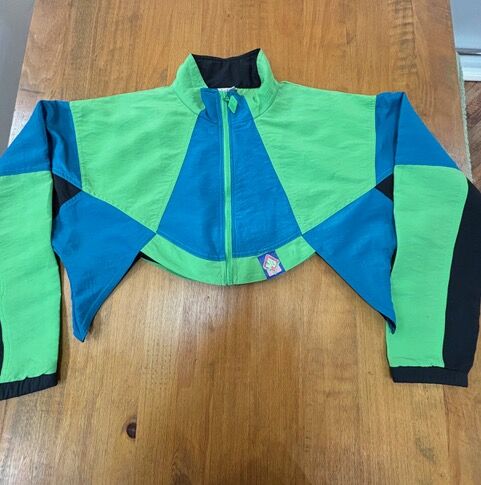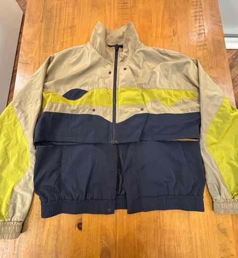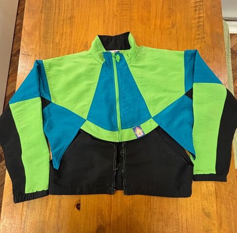 ウィンドブレーカーの黒の部分をカットしてオープンファスナーを付け替えています。