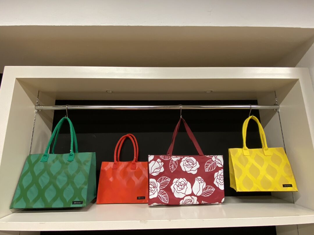 軽くて丈夫な生地に広口マチで底板で自立する形ハコ!