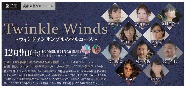 「雫のステージで吹奏楽は聴けないのか?」というリクエストはだいぶ前からいただいていました。世間でおなじみの数十人でやるようなステージは、室内楽の範疇から外れるので実現は不可能ですが、その原点とも言える管楽室内楽の編成で、何かチャレンジングなことができるかもしれないーこれが今回の企画の出発点となりました。
