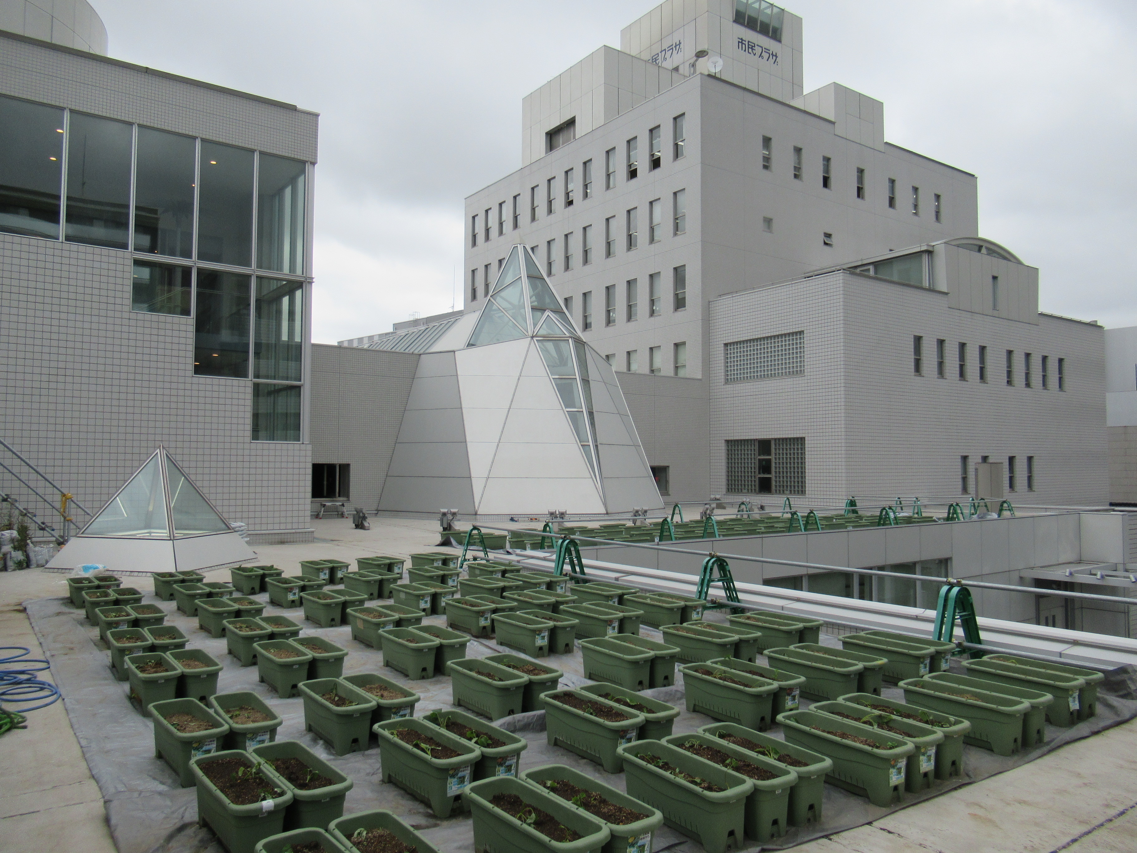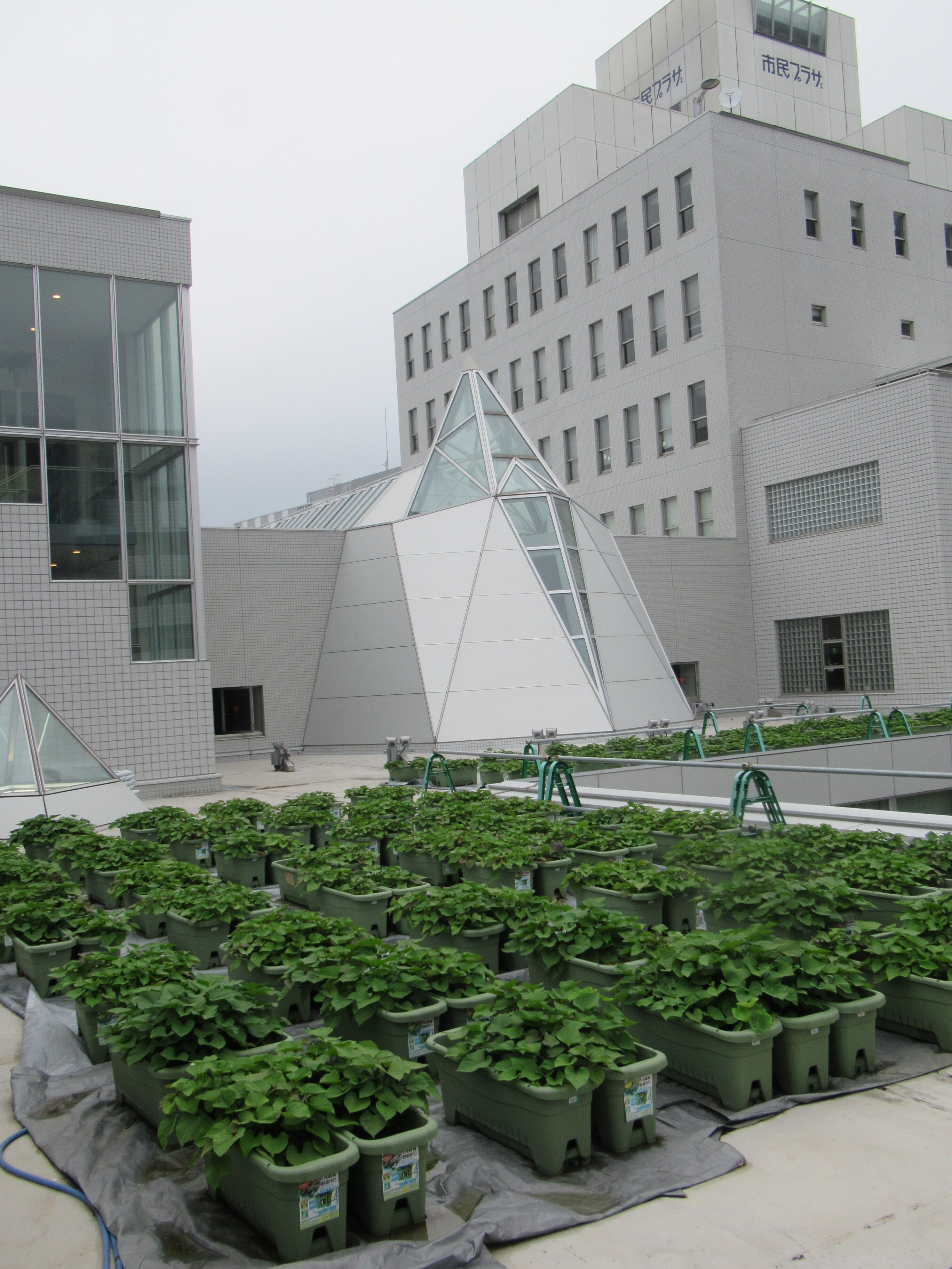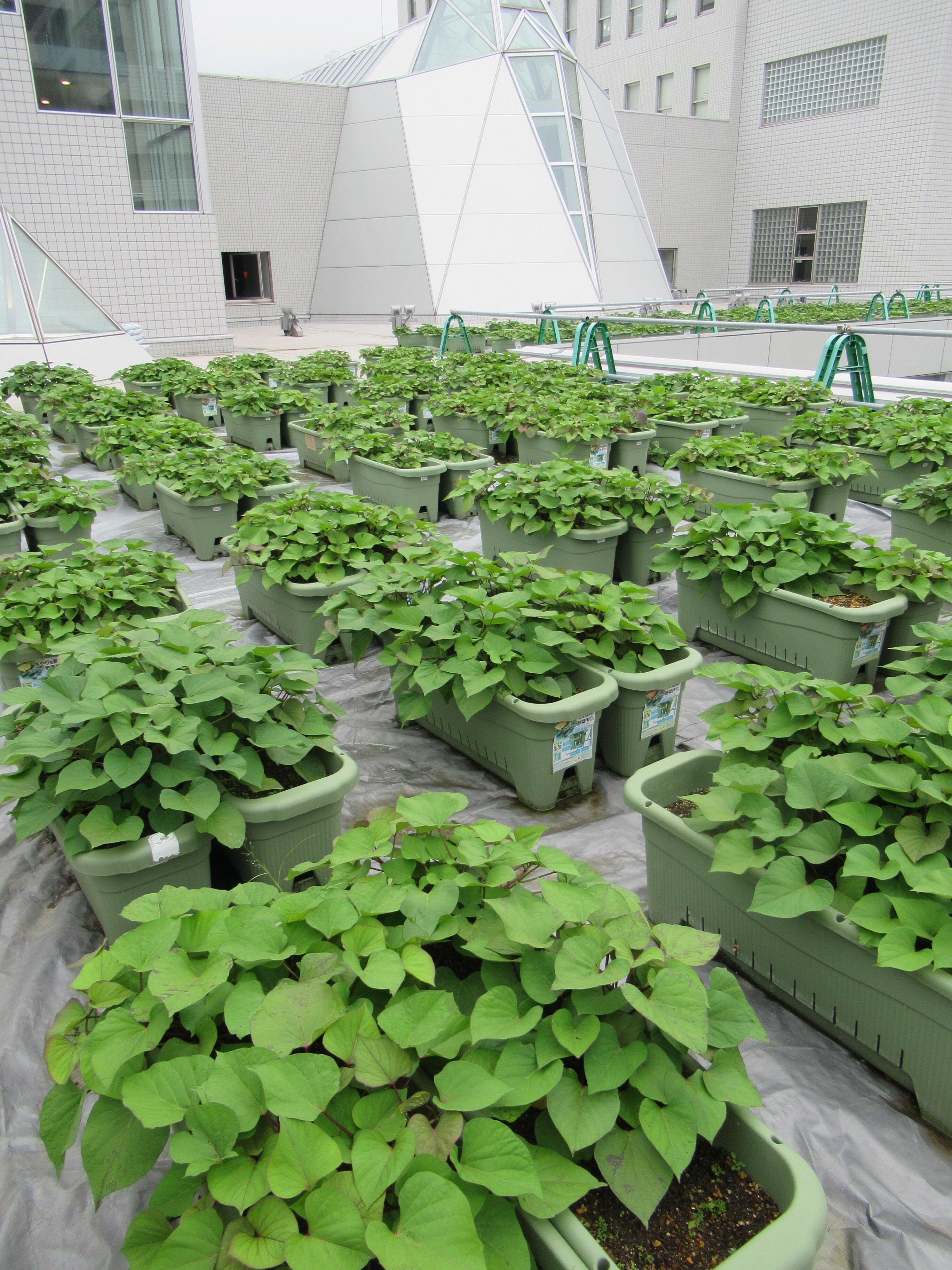 今年も富山市民プラザの屋上農園でサツマイモの苗を植え付けました。