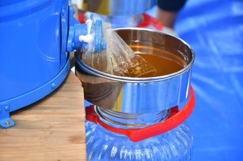 今回のイベントでは、はじめに、ミツバチの生態を学ぶミニ講座にて、ミツバチやハチミツについての理解を深めていただいたのちに、実際に蜜ブタを切ったり、遠心分離機を回してみたり、ハチミツを味わってみたりといった採蜜・試食体験会を行いました。また、当日お土産としてお持ち帰りいただいたハチミツのビンに色ペンやシールでデコレーションをしたり、チェキでの写真撮影も行ったりしました。これらの体験が、皆様のこの夏の思い出のひとつに、記憶・形(物)の両方で残っていただければ、幸いです。