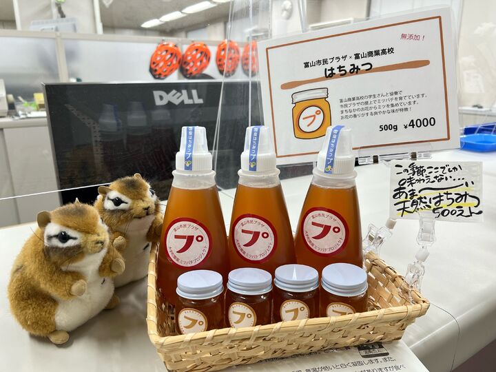 2018年から、富山商業高校と協働して、富山市民プラザビルの屋上で西洋ミツバチの養蜂を行っています。学生と一緒に採蜜イベントや、採れたハチミツをイベントや地場もん屋総本店等で販売しています。