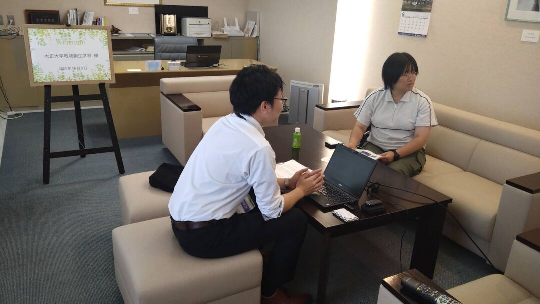 大正大学地域創生学科の舘野様が、大学実習の一環として、富山市の公共交通施策を通じたまちづくりの研究のため、富山市民プラザにお越しくださいました。