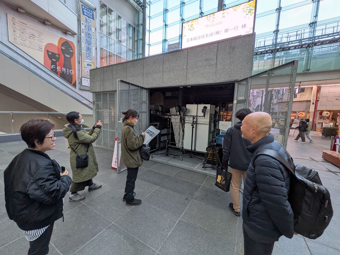 限られた時間ではありましたが、現地ではグランドプラザで開催中のイベントや昇降舞台の稼働状況、さらに地場もん屋総本店の様子をご覧いただきました。