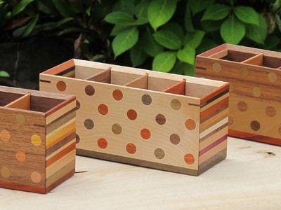 多種類の木材を使用し、寄木、木象嵌という伝統技法で、ポップでカラフルな模様を施すことによって、天然色を活かした木工作品を製作しています。
