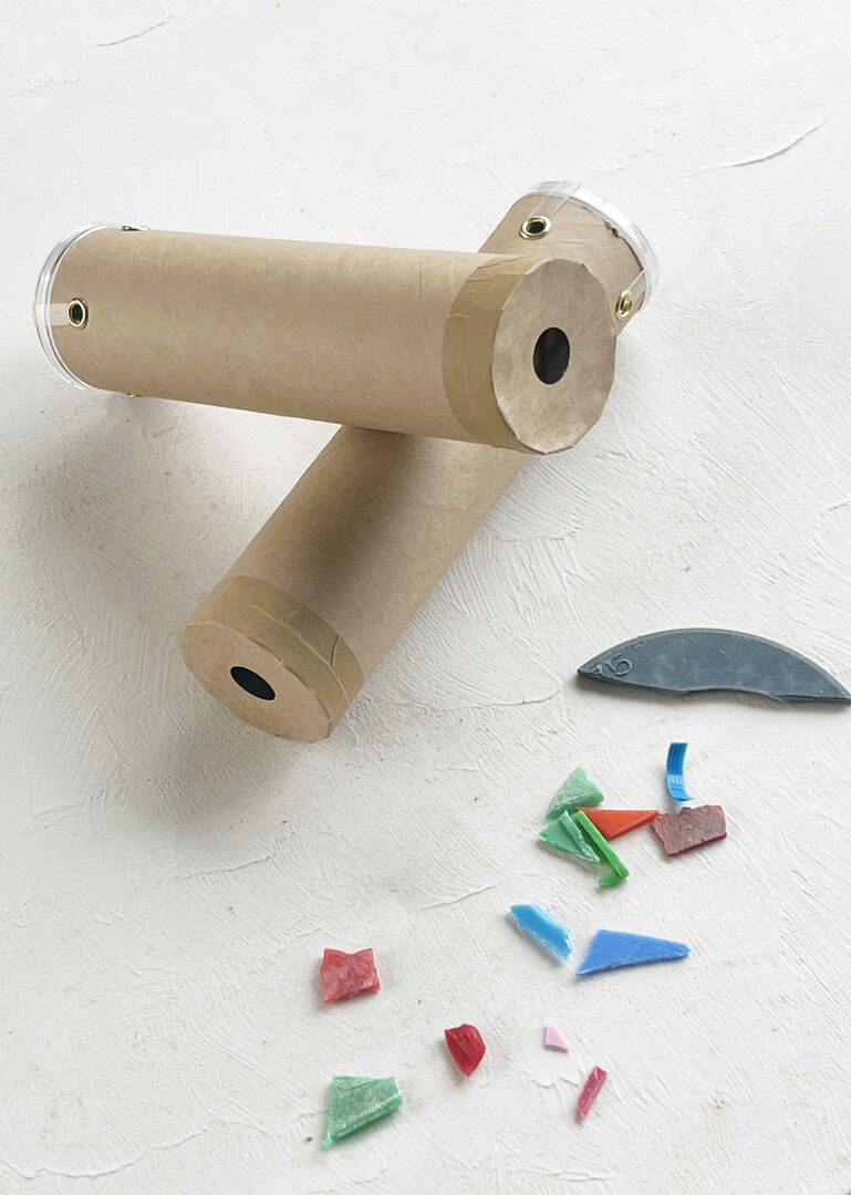 海洋プラスチックごみを使って、万華鏡を作ります。
