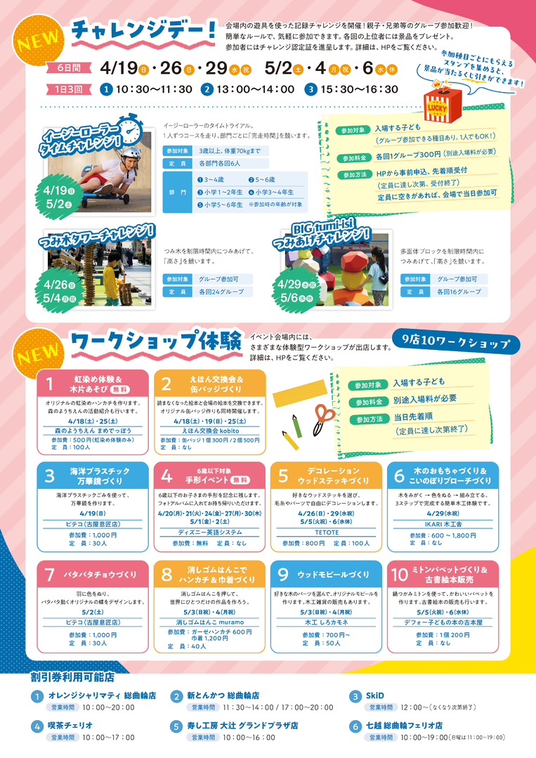 チャレンジデー!・ワークショップ体験は別途料金(別会計)が必要です。
