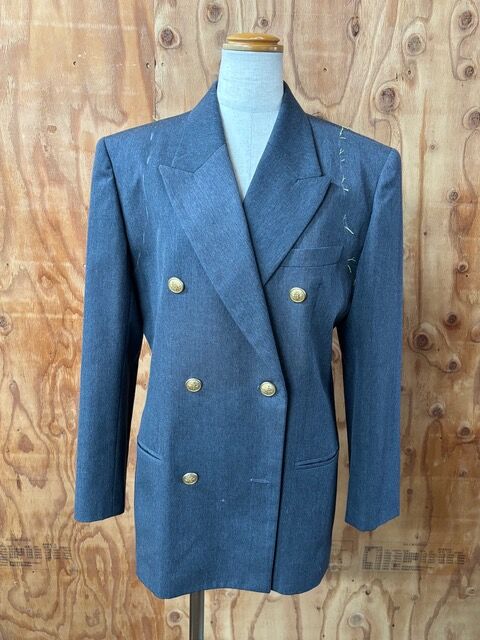着なくなったダブル前のテーラージャケットをベストにしています。